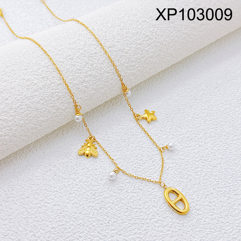 Level B Stainless Steel New Trendy Women Jewelry Pearl Style/Plastic Beads Pig nose Oval Animal Bee Star Golden Pendant