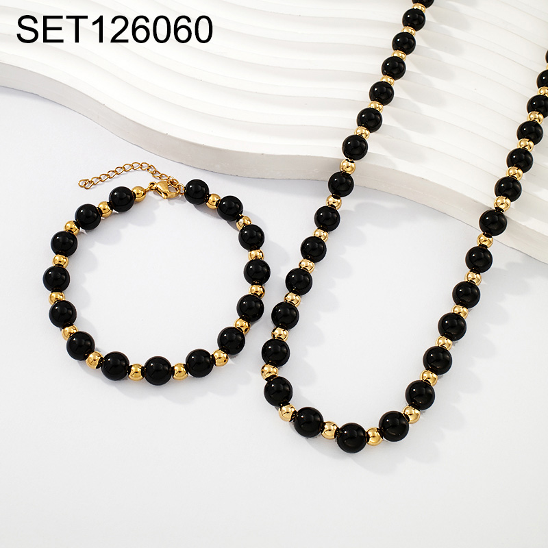 > Level B Stainless Steel New Trendy Women Jewelry Golden Bead Chain SET