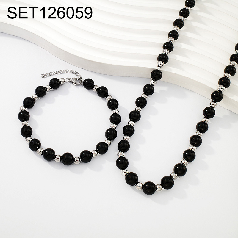 > Level B Stainless Steel New Trendy Women Jewelry Steel color Bead Chain SET
