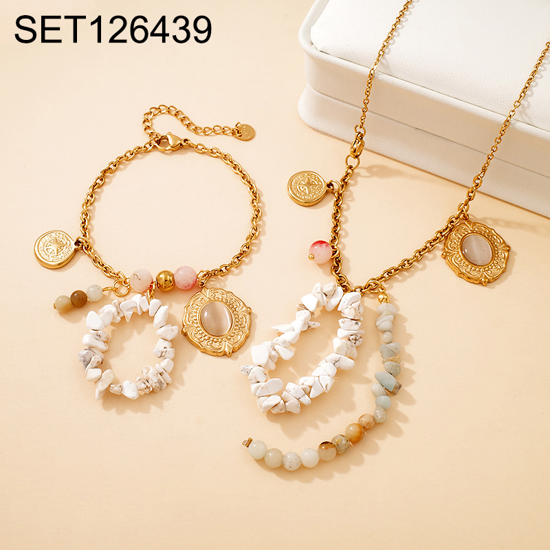 Level B Stainless Steel New Trendy Women Jewelry Golden Chain SET