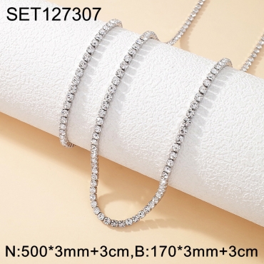 Home > Stainless Steel Sets > Necklaces & Bracelets > Level B Stainless Steel New Trendy Women Jewelry Round White Rhinestone Steel color Chain SET
