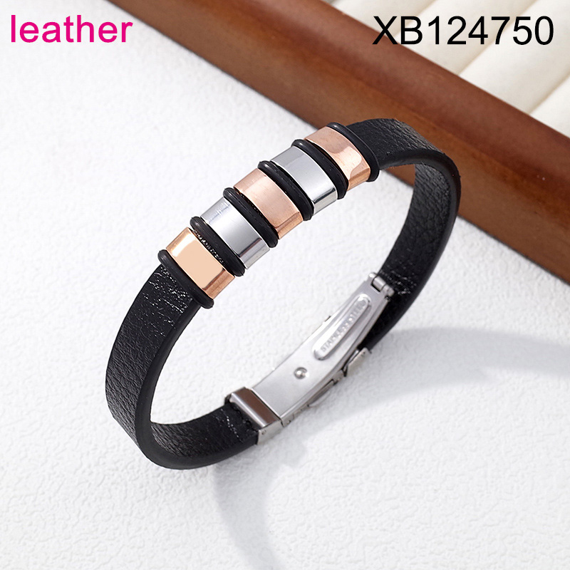Home > Stainless Steel Bracelets > Leather Bracelets > Level B Stainless Steel New Trendy Man Jewelry Two Tone Leather Bracelet