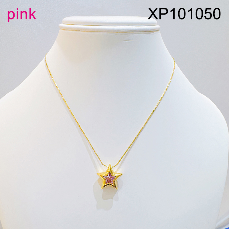 > Level B Stainless Steel New Trendy Women Jewelry Star Pink Glass zirconium Golden Pendant