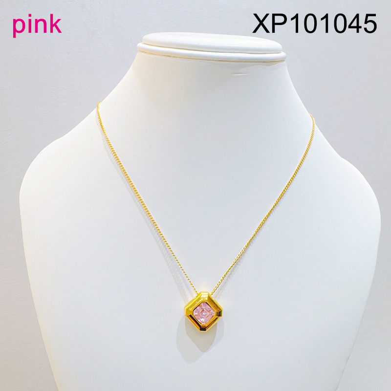 > Level B Stainless Steel New Trendy Women Jewelry Square Pink Glass zirconium Golden Pendant