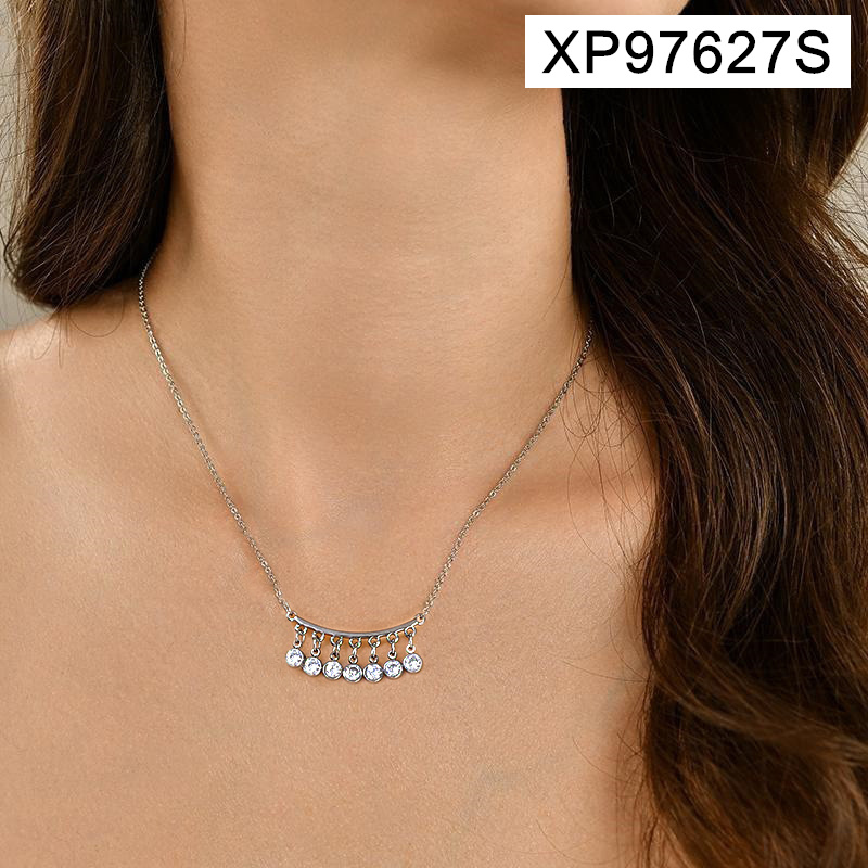 Level A Stainless Steel New Trendy Women Jewelry Round Stone Tassel Steel color Pendant