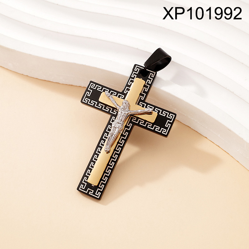 Level B Stainless Steel New Trendy Man Jewelry Cross Jesus Three Tone Pendant