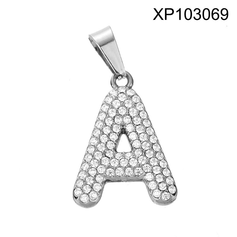 Home > Stainless Steel Pendants > Crystal Pendants > Level B Stainless Steel New Trendy Women Jewelry Letter A Steel color Pendant
