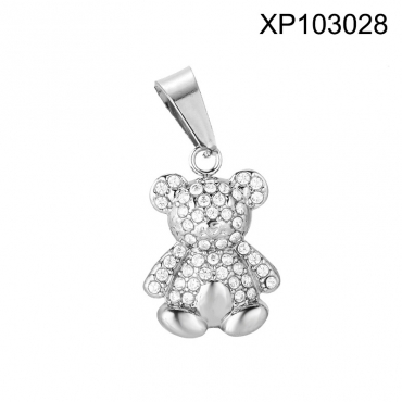 Home > Stainless Steel Pendants > Crystal Pendants > Level B Stainless Steel New Trendy Women Jewelry Animal Bear Steel color Pendant