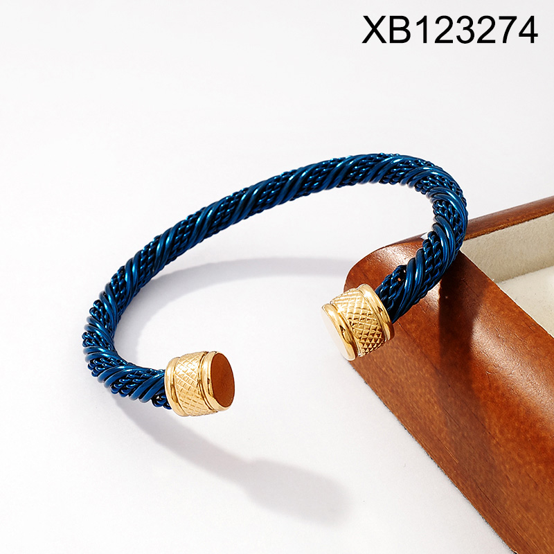> Level B Stainless Steel New Trendy Women Jewelry Two Tone Wire Bangle;Bangle size can be adjusted freely