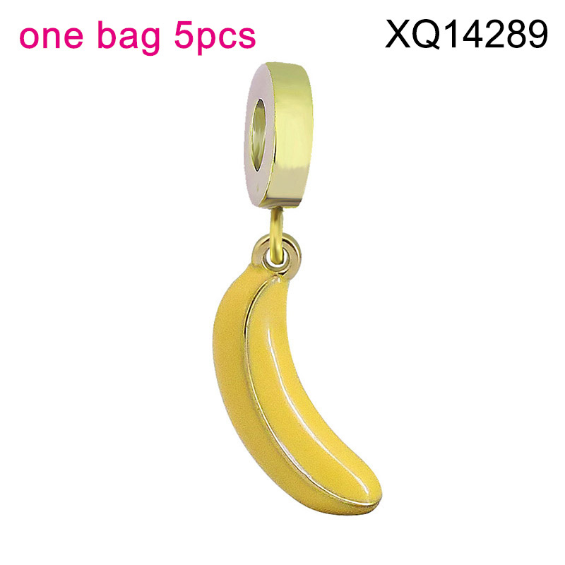 > Level B Stainless Steel New Trendy Children Jewelry Drip Oil/Enamel Summer fruit style Banana Golden DIY Charms