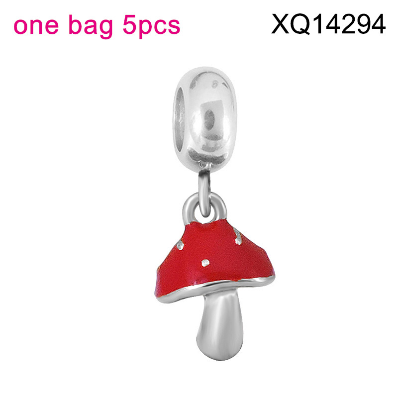 > Level B Stainless Steel New Trendy Children Jewelry Drip Oil/Enamel Mushroom Steel color DIY Charms