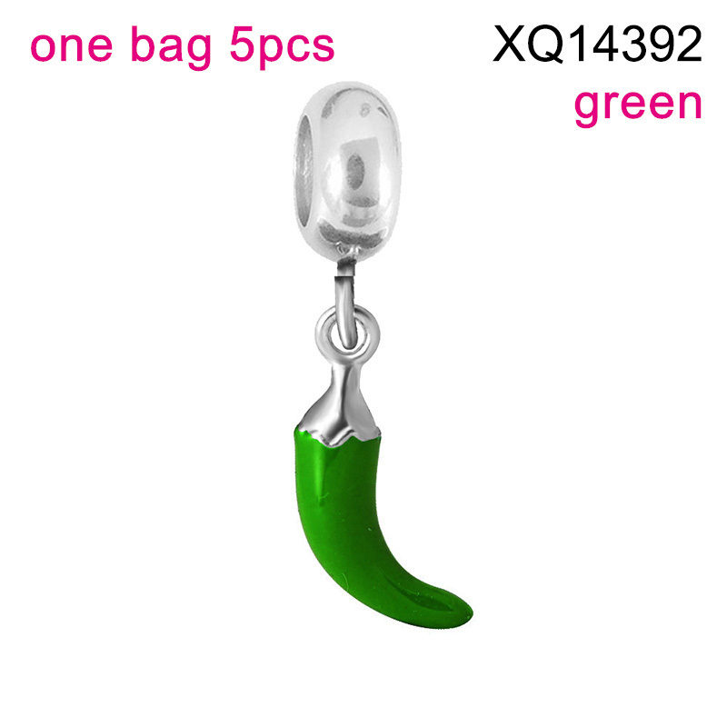 Level B Stainless Steel New Trendy Jewelry Drip Oil/Enamel Green Chili Steel color DIY Charms